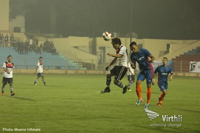 New Delhi, December 01, 2015: 9th North East Tamchon Football Tournament 2015 chu Ambedkar Stadium, New Delhi hmunah nei tan a nia, Opening Match/Kick Off ah Hmar FC le Wung United hai chu inhnel in Hmar FC in goal 1 thun in Wung United hai chu an hne nih. Hmar FC ta dinga minute khat ang um ta hnunga hratna goal thuntu chu Daniel Hmar (Jersey No.5) a nih.