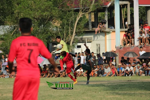 CCPur, May 13, 2017, Virthli (ONP): Mi tam tak lo beiseina chu FC Ridil in May 13, 2017 zantienga Manipur a Hmar Martyrs' Trophy Semi-Final inkhelna a chun a sukpuitling zo ta naw a nih. Hi huna hin an fans tam tak chu an goal tieng a vawi hnina a lut chun an trin san leiin entu mipui 100 ah 90 vel chu Ridil play en dinga hung anni a sukchienga, hi tournament sunga fans hau pawl tak khawm anni leiin Semi-Final day 1 nekin mipui an tam a, still, video, drone camera leh FC Ridil Official Photographer haiin an uop a, Chief Guest Pu Michael Ginzasuan DSO, CCPur chun Team spirit nei a pawimaw zie le chu team spirit nei chu hlawtlingna (victory) bulpui a ni zie hai uor takin a hril a. Hmar Astiste a inthawk Ms. Elizabeth Sungte le Ms. Gloria Lalmalsawm Khawlhring haiin inkhel hmain mipui hla'n an inawi bawk.