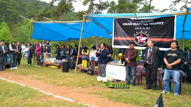 Shillong, May 16, 2017, Virthli (ONP): Hmar Youth Association (HYA), JHQ, Shillong huoihawtna hnuoi-a 2nd Shillong Hmar Martyrs' Trophy Closing Ceremony le Final inkhelna chu vawisun khan Motinagar playground, Shillong hmuna nei a nih. Hi huna hin Pu Tana Darngawn chu Khuollien a hmang a nih. Khuollien in thuhrilna hun neiin, ram le hnam ta dinga an hringna hlutak lo inhlantu hnam pasaltha hai hrietzingna hun hmang theia um chu lawmum a ti thu a hrila, hnam pasaltha mihrang tamtak lo liem ta hai, hring le dama um hai hin ram le hnam ta dinga theitawp suo dingin mipui fekhawm hai ditsakna an hlan.