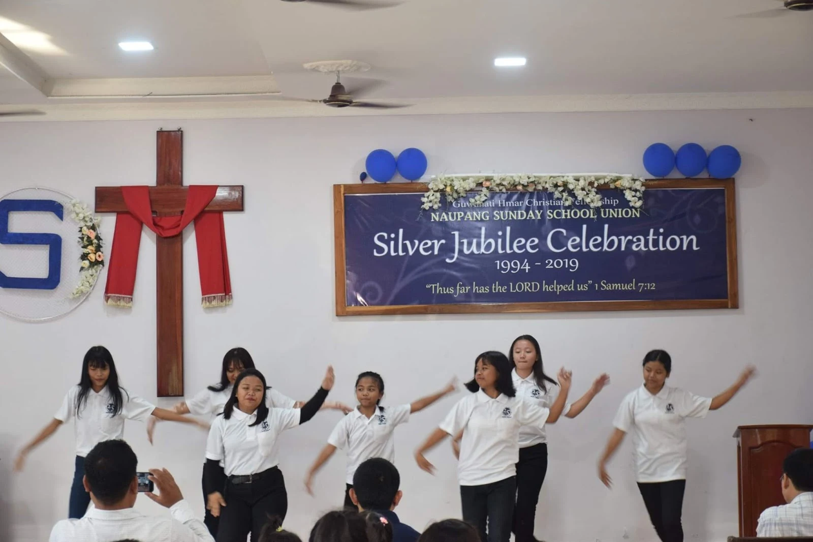 Guwahati, October 14, 2019, Virthli(ONP): Liemtah ni 12 le 13 khan Guwahati Hmar Christian Fellowship hnuoia department Naupang Sunday School Union chun Kum 25 (1994-2019) tling lawmna Silver Jubilee ropui taka hmang a nih. Programme hi Day 1 le Day 2 a the ani a, Day 1 zinga dar 8:00 am in Jubilee lung hawngna Rev. Lalchawlthang Thiek in anei a. Day 1 hi EFCI Centre Pillangkata hmuna hmang niin ruoi inhnik tak kiltlang a nih. Hi ni hin KTP, NSSU han item hmu nuom um tak tak mipui fekhawm hai inentirna an nei. Jubilee Message Pi Lienkhawtling, Pu Sangkhum Joute Representative NSSU han hrilna an nei a nih.