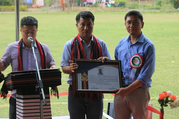 Hi huna hin Pu Lalvullien Hmar, Chairman, HMARTOB in lawmlûtna thucha a hril a, Mr. Lallienkhum Traite, Secretary, HMARTOB in Khuollien hai Chawimawina thuziek ‘Memento’ a'n hlan.