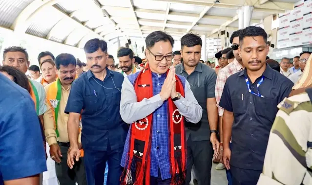 Dimapur, July 11, 2025: Hon’ble Union Minister for Parliamentary & Minority Affairs, Shri Kiren Rijiju, arrived in Dimapur, Nagaland, to attend the Rozgar Mela, a flagship initiative under the vision of Prime Minister Narendra Modi aimed at empowering India’s youth through employment opportunities.